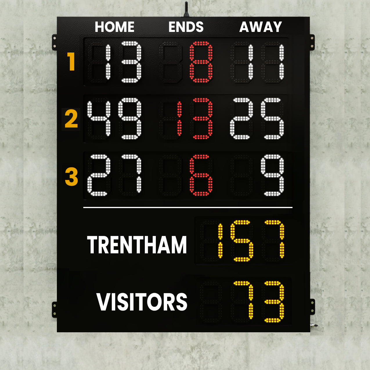 The brand new UK designed and manufactured, Scoreboards Online electronic bowls scoreboard is ideal for any club big or small. Available in 3, 4, 6 or 8 rink versions (other sizes are available upon request) there is a size to suit your facility.