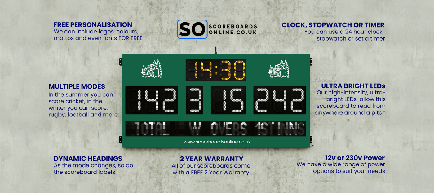 At Scoreboards Online we offer a wide range of cricket scoreboards that can suit any budget or requirement. Whether you are a village cricket club or playing in the premier league, we have something for you.